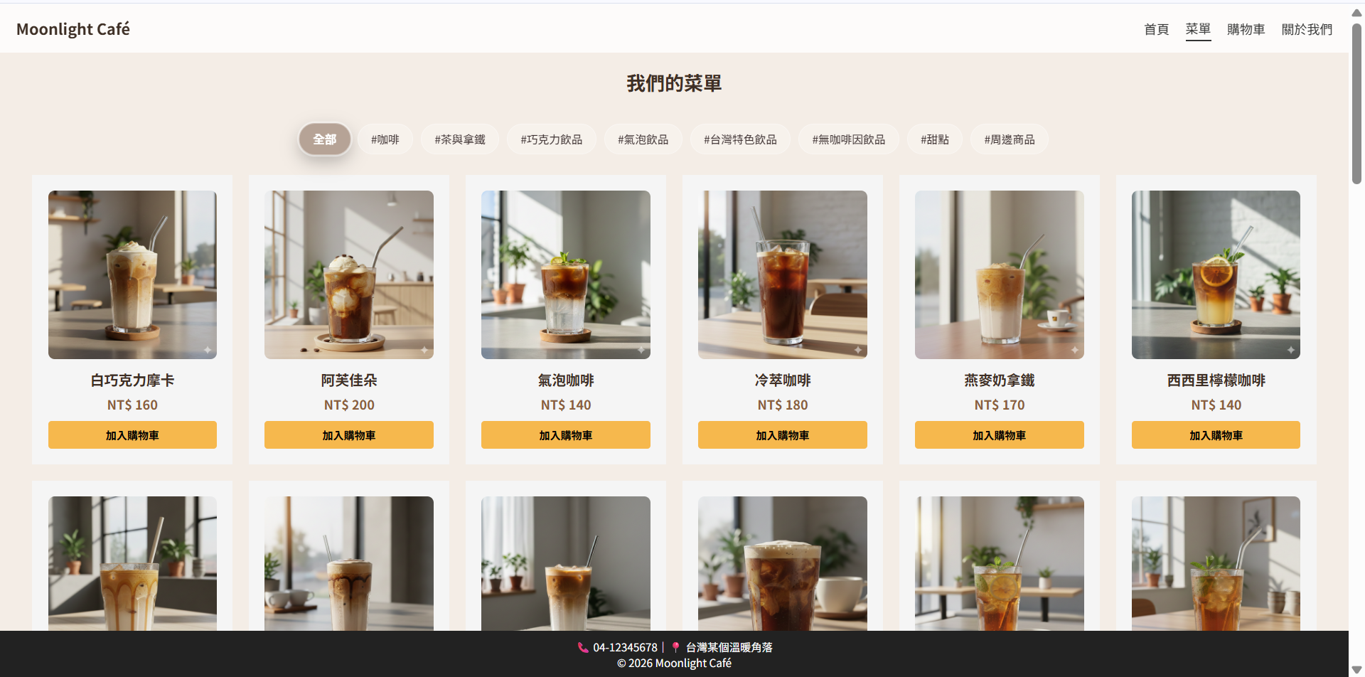 以大面積形象圖片作為視覺焦點,搭配簡潔明確的導覽列,引導使用者快速理解網站定位與主要功能。整體版面留白適中、資訊層級清楚,讓使用者一進入網站即可建立良好的第一印象,並順利延伸至後續瀏覽與點餐流程。